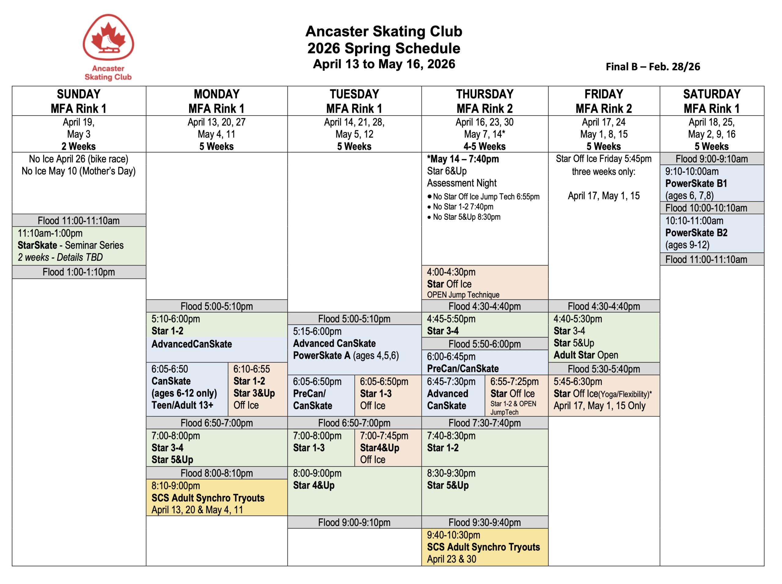 Once you have registered, log in to your Uplifter account: https://register.ancasterskatingclub.ca/, then go to My Account > Calendar for your personalized program calendar.